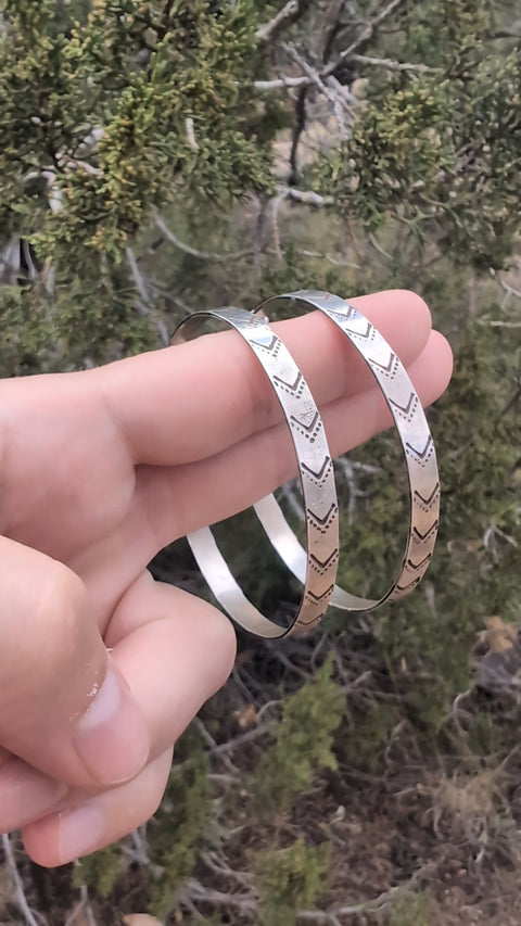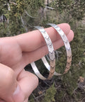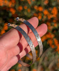 These mystical Southwestern Stamped Hoops feature radiant sun-inspired stamping and intricate silversmithing. Comfortable for all-day wear, they’re a signature piece for everyday mystical elegance.