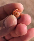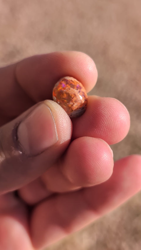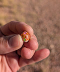 - Stone has a deep orange base color, with flashes of lime green, lavendar, aqua, fuschia, yellow-orange, etc. (12mm x 10mm).