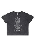 This Lilith Crop Top celebrates unapologetic authenticity. Illustrated with a hybrid owl-lioness creature beneath a dark haloed moon and coiled snake, it embodies Lilith’s fierce independence. Paired with the phrase “In a world full of Eves, be a Lilith,” this design calls in courage, sovereignty, and witchy rebellion — perfect for anyone who refuses to be tamed.