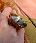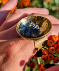 - Yellow brass ring featuring a Sterling Silver seedling.