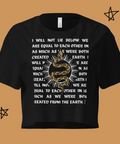 The Lilith Creed Crop Top celebrates autonomy and sacred rebellion. A hypnotic, eye-covered serpent overlays the iconic quote, “I will not lie below. We are equal to each other in as much as we were both created from the earth” — Lilith’s timeless refusal to submit. With her crescent symbol and a dark haloed moon, this design channels independence, witchy wisdom, and unapologetic strength.